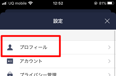 ②プロフィールをクリック