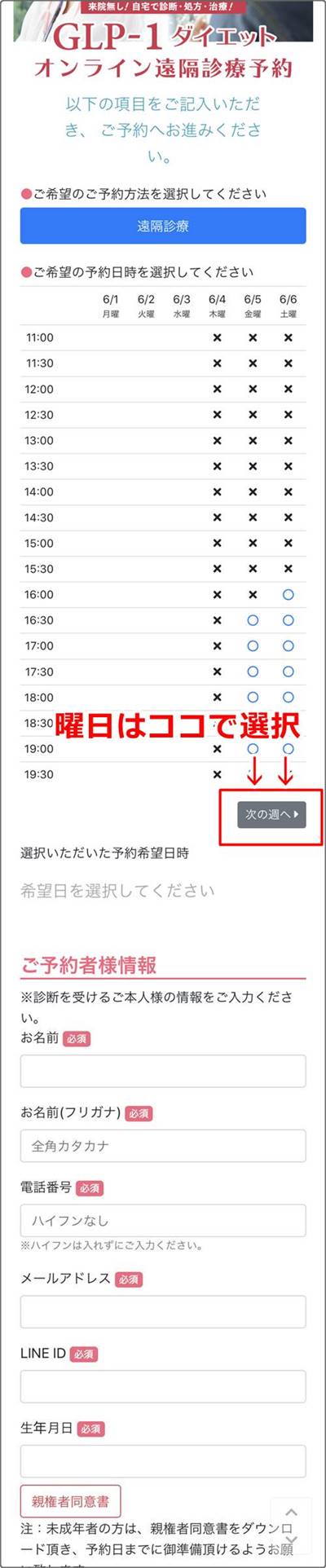 ①WEBで遠隔診療の申し込み!(無料)