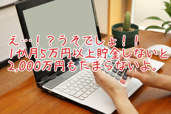 まさか、1か月5万円以上貯金をしないと2,000万円もたまらないとは思わなかった。