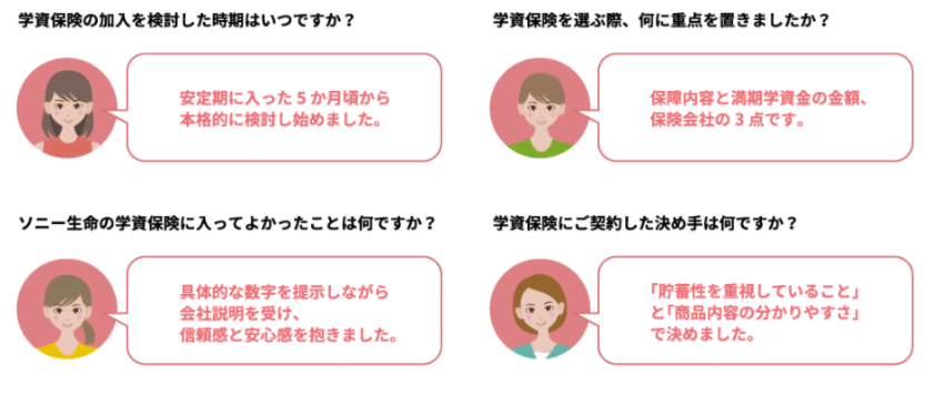 私はソニー生命の学資保険のおかげで子供の将来の心配がなくなったよ。